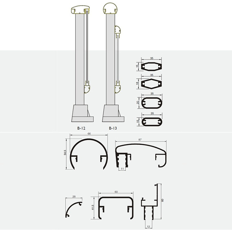 La serie Barandilla se fabrica con perfiles de aluminio, disponiendo de una amplia gama de accesorios necesarios para solucionar todo tipo de acabados.