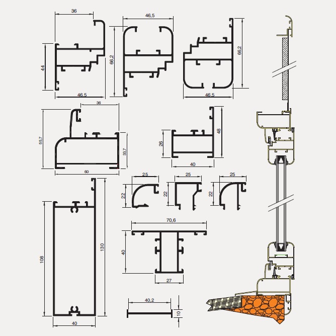 Huecos de luz para acristalar: 7 mm., 11 mm., 15 mm., 20 mm. y 23 mm.