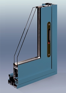 Su amplio hueco de acristalamiento (hasta 32 mm.) permite colocar vidrios de doble cámara que, junto con la rotura térmica ocasionada entre las dos secciones de aluminio, permite alcanzar un nivel termo-acústico excelente.